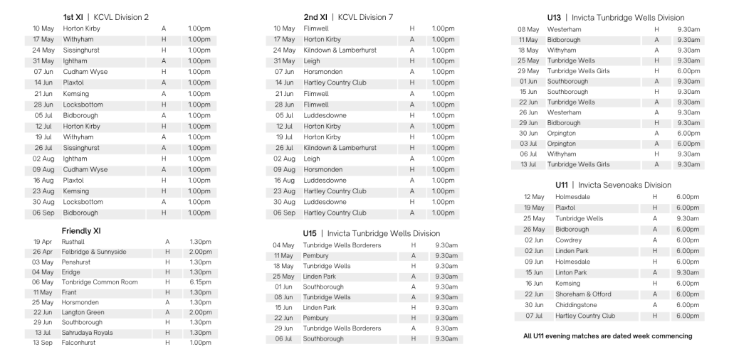 Pick up your fixture card from the Pavilion next time you’re there or view all fixtures on PlayCricket.